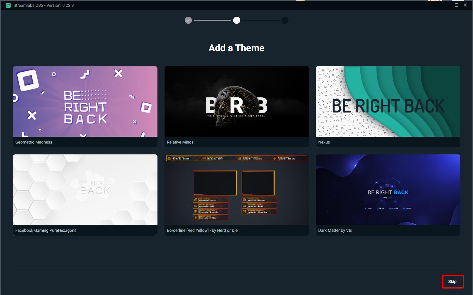 Để khung stream của mình được "chuyên nghiệp hơn" thì các bạn sẽ đi đến bước tiếp theo để có thể cài đặt các themes mà streamlabs OBS cho bạn sử dụng gắn vào khung stream.