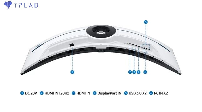 - Cổng kết nối: 3x HDMI (2.1), 1x DisplayPort (2.1), 1 x Headphone, USB Hub 3.0