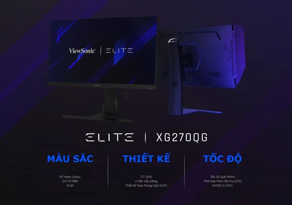 ViewSonic Elite XG270QG là màn hình chơi game có kích thước 27", độ phân giải 2K QHD và sử dụng công nghệ tấm nền Nano IPS cùng độ phủ màu lên tới 133% sRGB, 98% DCI-P3 mang đến sự cân bằng hoàn hảo cho trải nghiệm game sống động ở mọi góc nhìn. Sản phẩm tích hợp công nghệ NVIDIA® G-SYNC™ giúp loại bỏ hiện tượng giật hình xảy ra do sự khác biệt giữa tốc độ khung hình của card đồ họa và tần số quét của màn hình. Màn hình gaming ViewSonic XG270QG sở hữu tần số quét 165Hz và thời gian phản hồi 1ms giúp game thủ thưởng thức các tựa game tốc độ với chất lượng hiển thị hầu như không còn bóng mờ chuyển động, chơi game mượt mà hơn. Sản phẩm được thiết kế dành riêng cho game thủ với thiết kế công thái học đặc trưng, game thủ có thể dễ dàng xoay, nâng hạ, nghiêng và quay màn hình để có những phút giây trải nghiệm hoàn hảo nhất. Elite XG270QG còn được trang bị công nghệ ViewMode độc quyền cho phép tùy chỉnh hoặc kích hoạt ngay các chế độ màu được cài đặt trước như chơi game, lướt web, xem phim, đọc văn bản..Sản phẩm được tích hợp công nghệ bảo vệ mắt tối ưu bao gồm công nghệ chống nhấp nháy và bộ lọc ánh sáng xanh giúp bảo vệ game thủ khỏi các hiện tượng đau mỏi mắt, nhức đầu khi ngồi lâu trước màn hình máy tính. Elite XG270QG được trang bị hệ thống loa kép 2W, hệ thống đèn LED Elite RGB cùng 2 cổng kết nối HDMI (1.4) và 1 cổng DisplayPort giúp kết nối dễ dàng với các loại card đồ họa cao cấp.